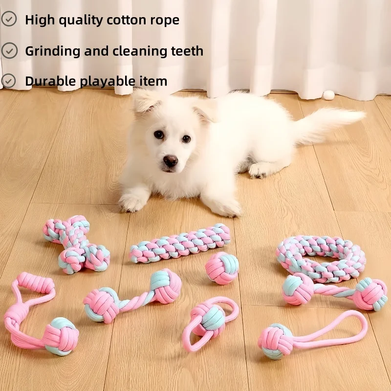 Cotton rope tug toy for tug-of-war and fetch.